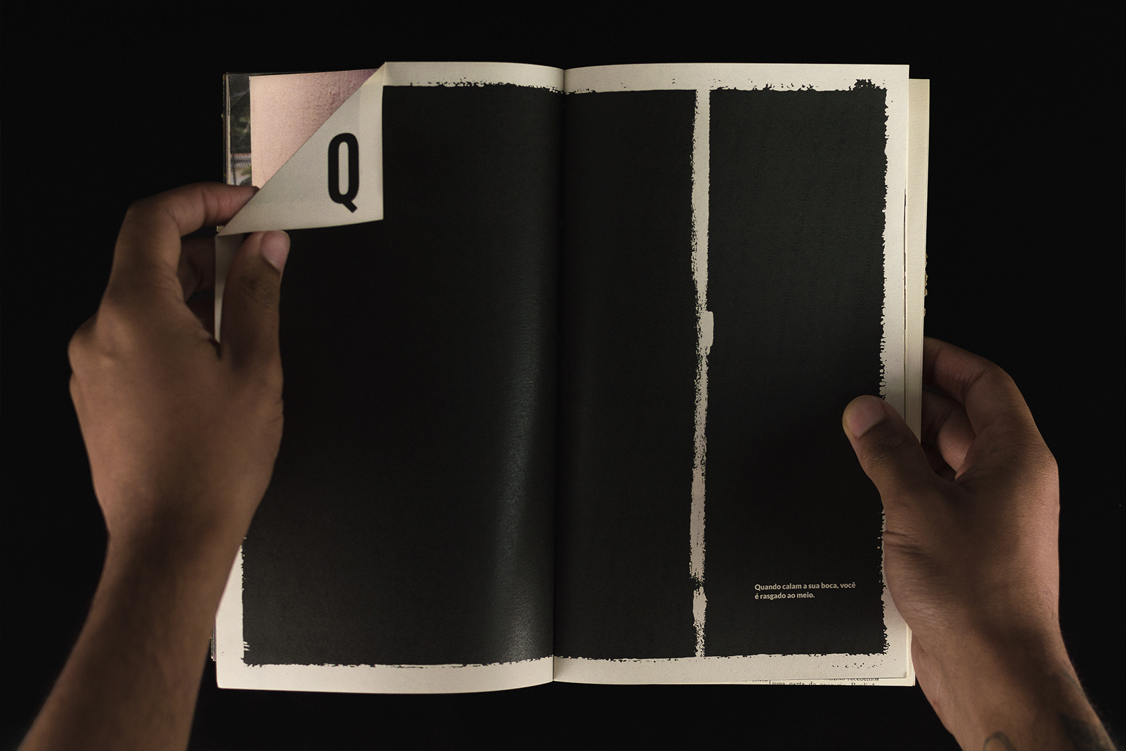 Todos os cartazes colados pela cidade foram registrados e compilados em um perfil no Instagram e transformado em um livro performance no qual você tem que rasgar, dobrar e girar para ler. Tem vezes que não dá pra entender o que tá escrito, e ir até o final é um processo bem cansativo.