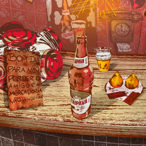 Ilustração com o tema “decoração de boteco” para a campanha ITA-NO BOTECO, da @itaipava.