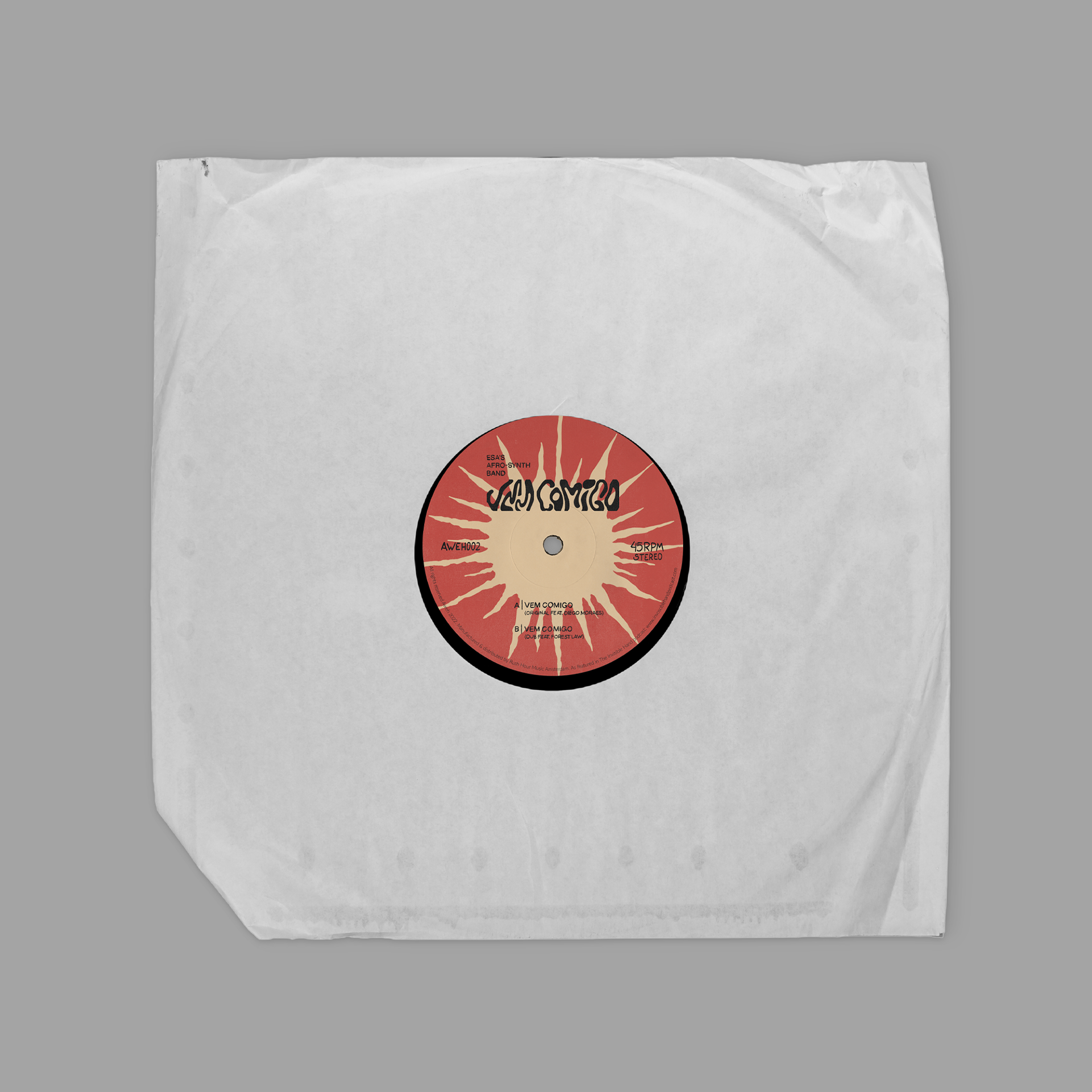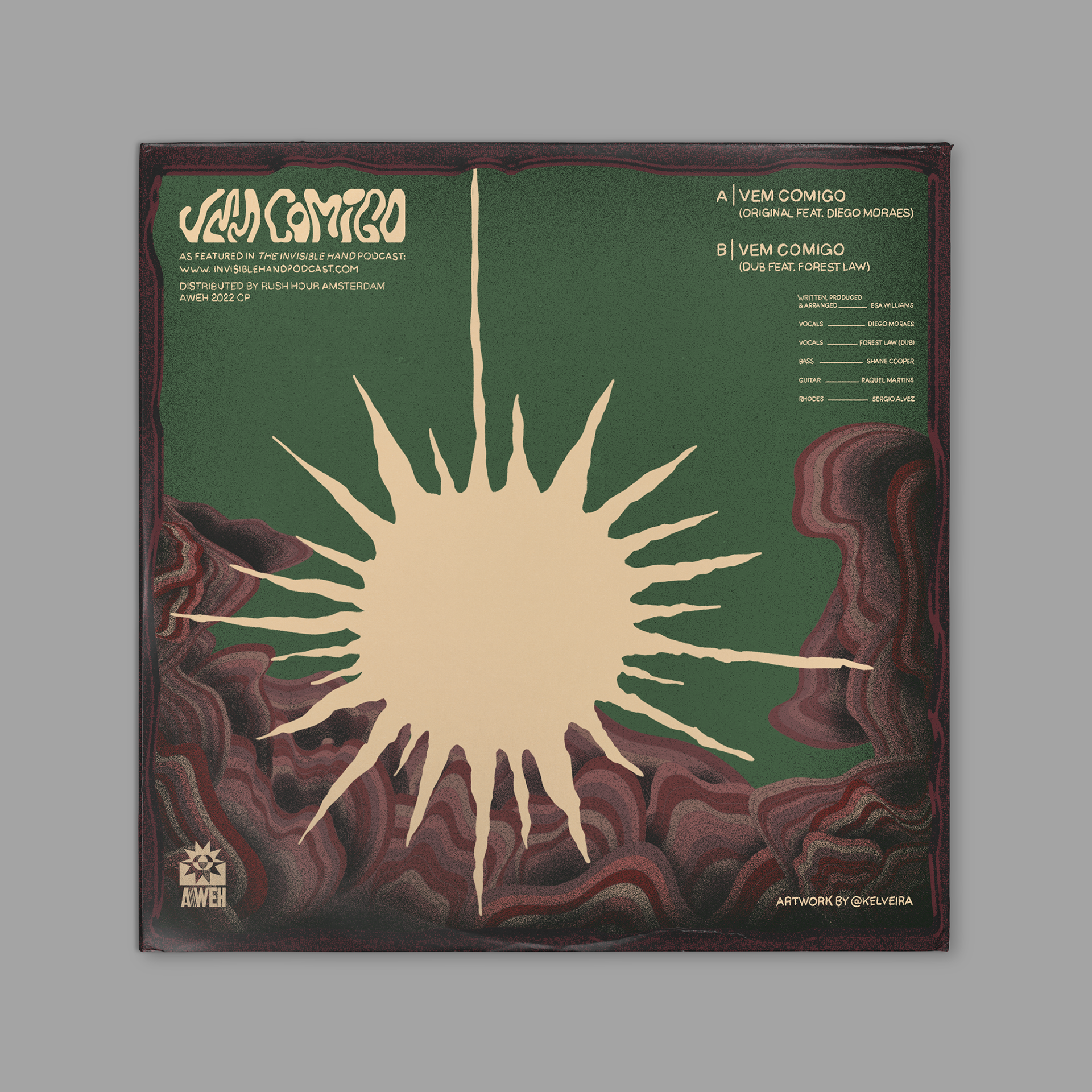 Arte para o vinil Vem Comigo - segundo lançamento do selo Aweh Label. Produção do músico Esa, que conta com influências brasileiras e africanas.